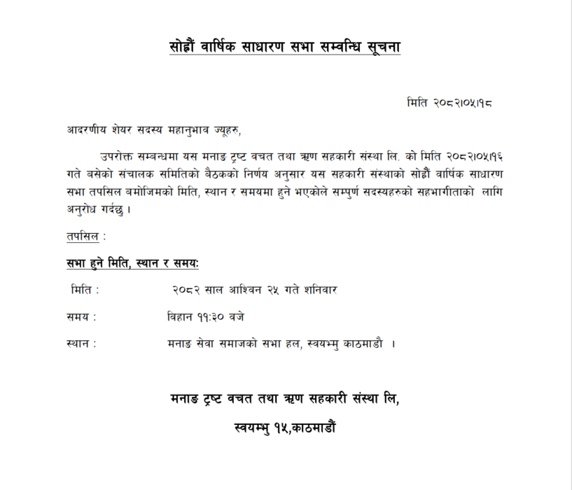 - 14th AGM held on Nov 6, 2023 (Kartik 20, 2080) at Manang Gumba, Swayambhu: Kathmandu, Nepal